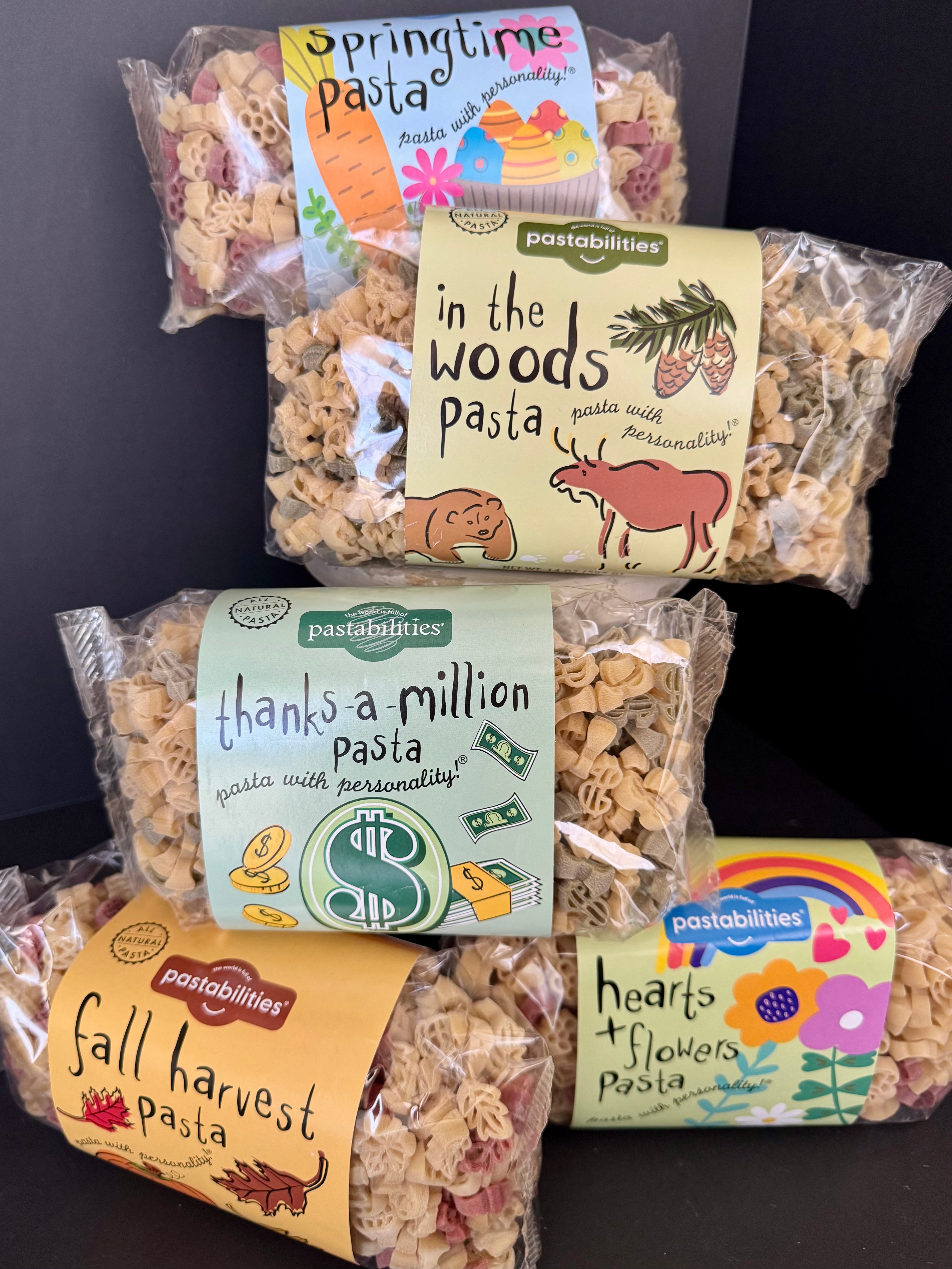 Fun, themed pasta shapes that make mealtime memorable. Add a seasonal bag for families, foodies, or anyone who loves to cook. (
