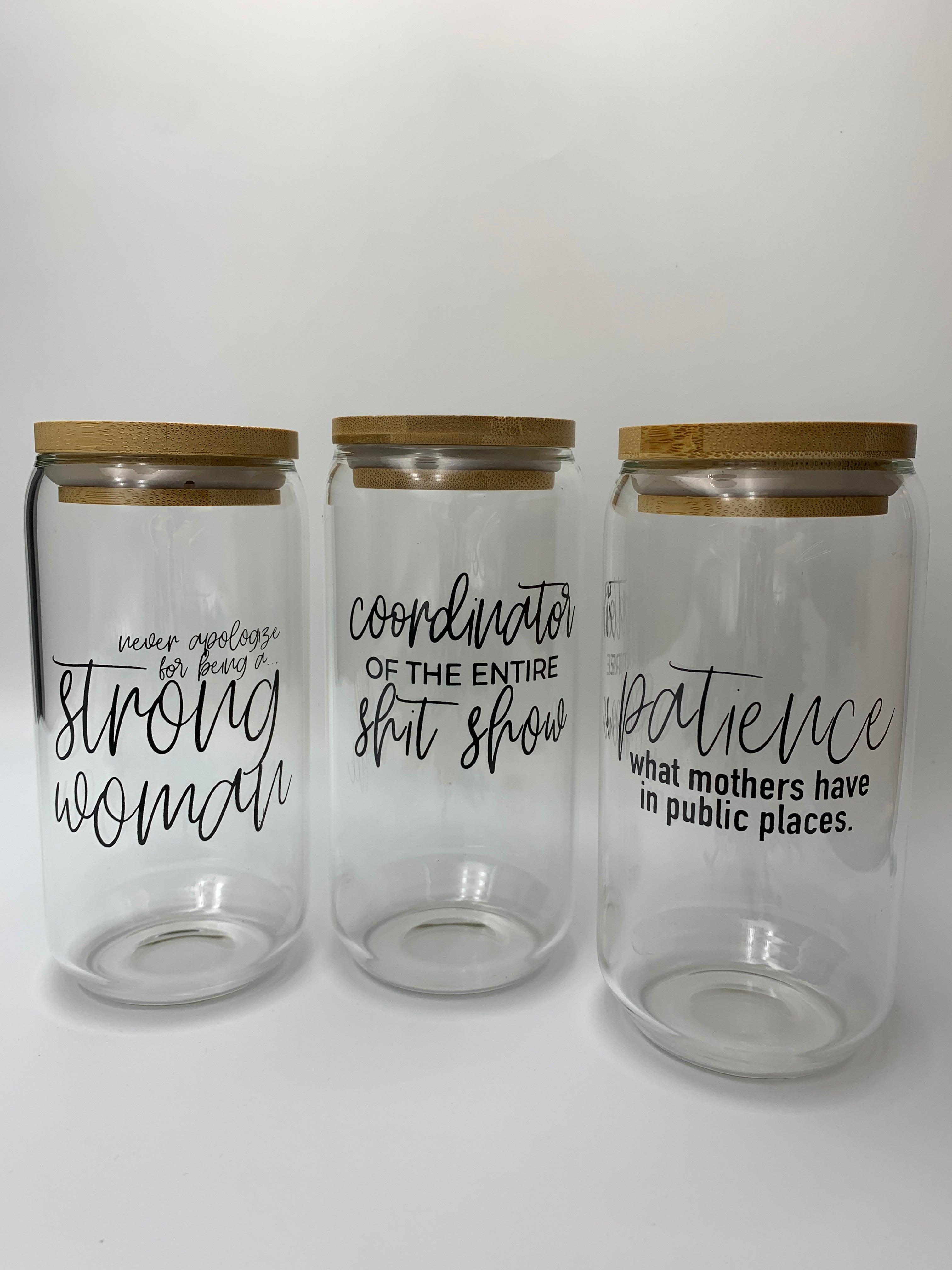 - Fun Glass Drink Mug w/lid and reusable straw - by Gia Roma (Choose from 3 different designs)
