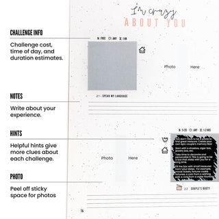 Each book or card set is filled with surprise adventures you reveal as you go — no overthinking, no planning stress. Simply scratch off a challenge and let the fun begin. Every experience includes prompts, space to add photos, and room to write about the memory you created together, turning it into a keepsake you’ll treasure long after the date is over.